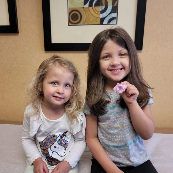 Analia with little sister at an up-dose visit for tree nut allergy. She is on OIT maintenance and has no more diet restrictions.